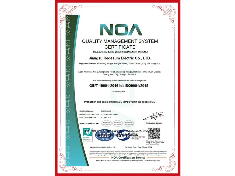 质量管理体系认证证书